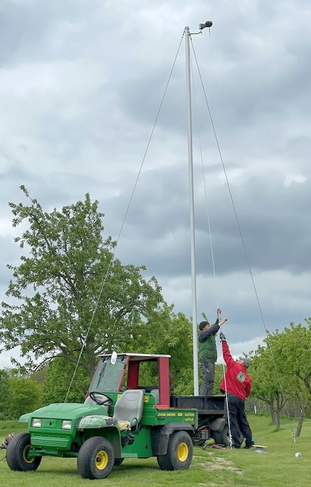 Die für den Mäh-Einsatz nicht ausreichend genaue Positionierung via GPS wird durch zwei Referenzstationen auf der Anlage unterstützt. So fahren die Mäher zentimetergenau. Diese Sender befinden sich auf den zwei neu aufgestellten Masten.